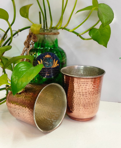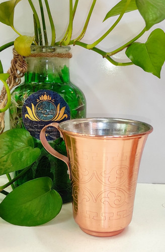 لیوان طرح لاله چکشی دسته مسی با روکش نانو