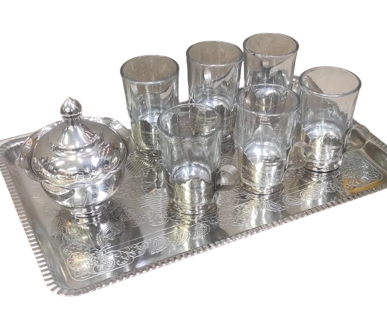 سینی با روکش تمام کروم رنگ سیلور بدون تغییر رنگ: ابعاد ۳۷*۲۳/۵ وزن حدودا ۶۵۰ گرم