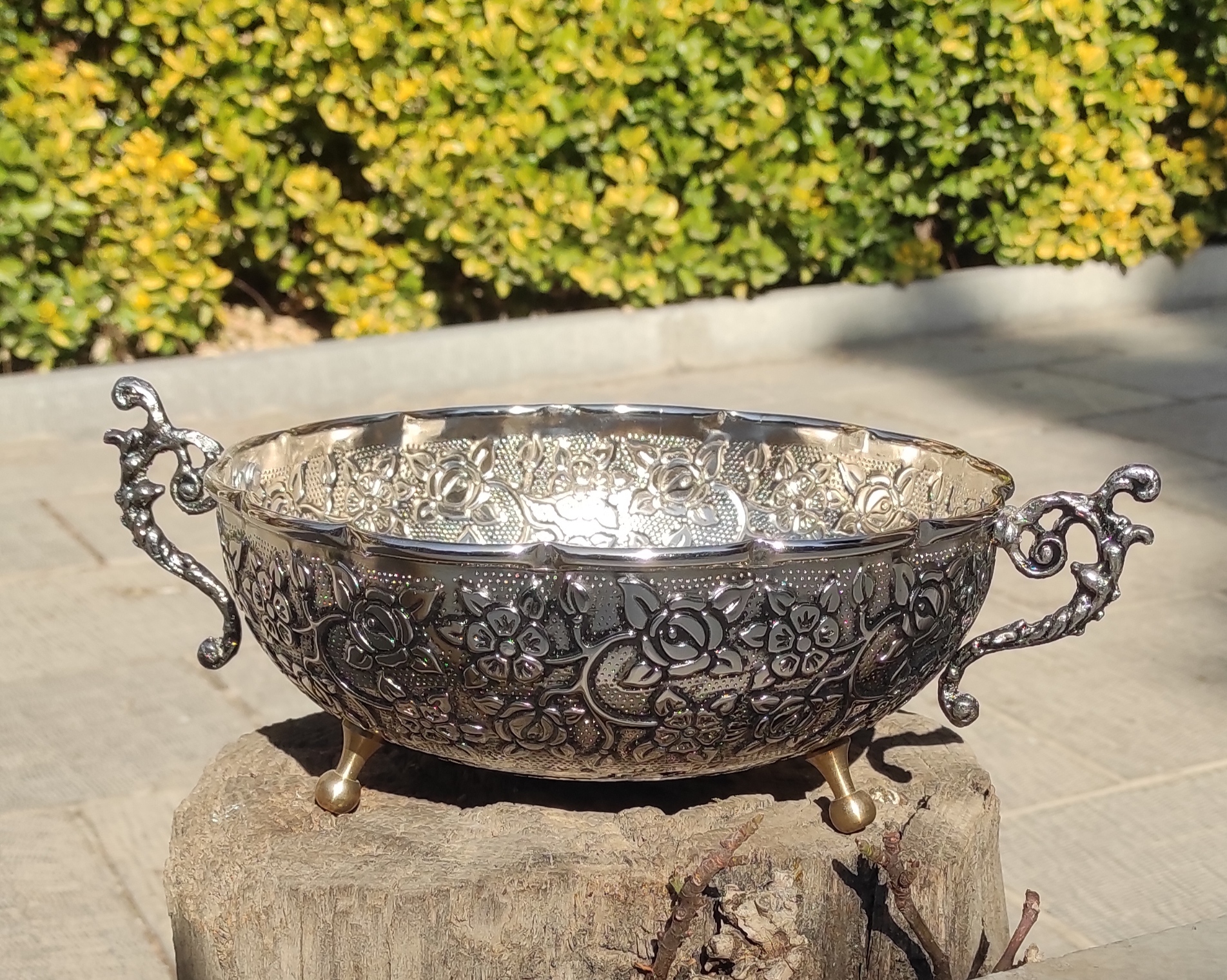بدون تغییر رنگ با ۳ پایه و ۲ دسته برنجی و گلهای برجسته: ارتفاع ۹ دهانه ۲۲