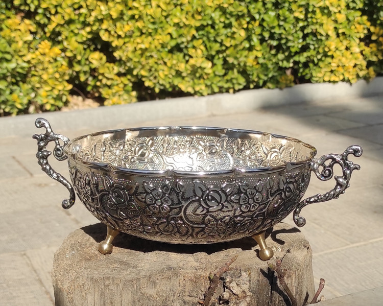 بدون تغییر رنگ با ۳ پایه و ۲ دسته برنجی و گلهای برجستهارتفاع ۹ دهانه ۲۲